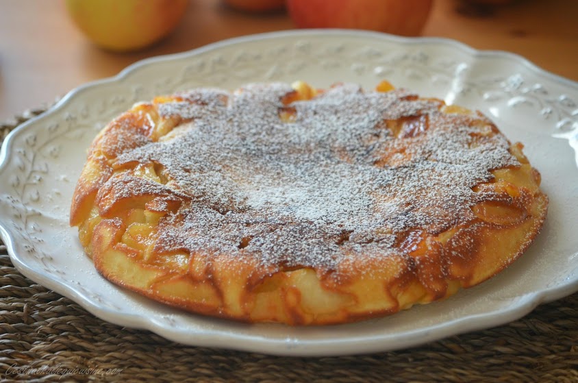 C'est vrai que sur la photo, on dirait une omelette mais non c'est un gâteau aux pommes que j'ai cuit dans la poêle, franchement je n'aurais jamais pensé tester une recette comme ça mais en faite c'est délicieux...